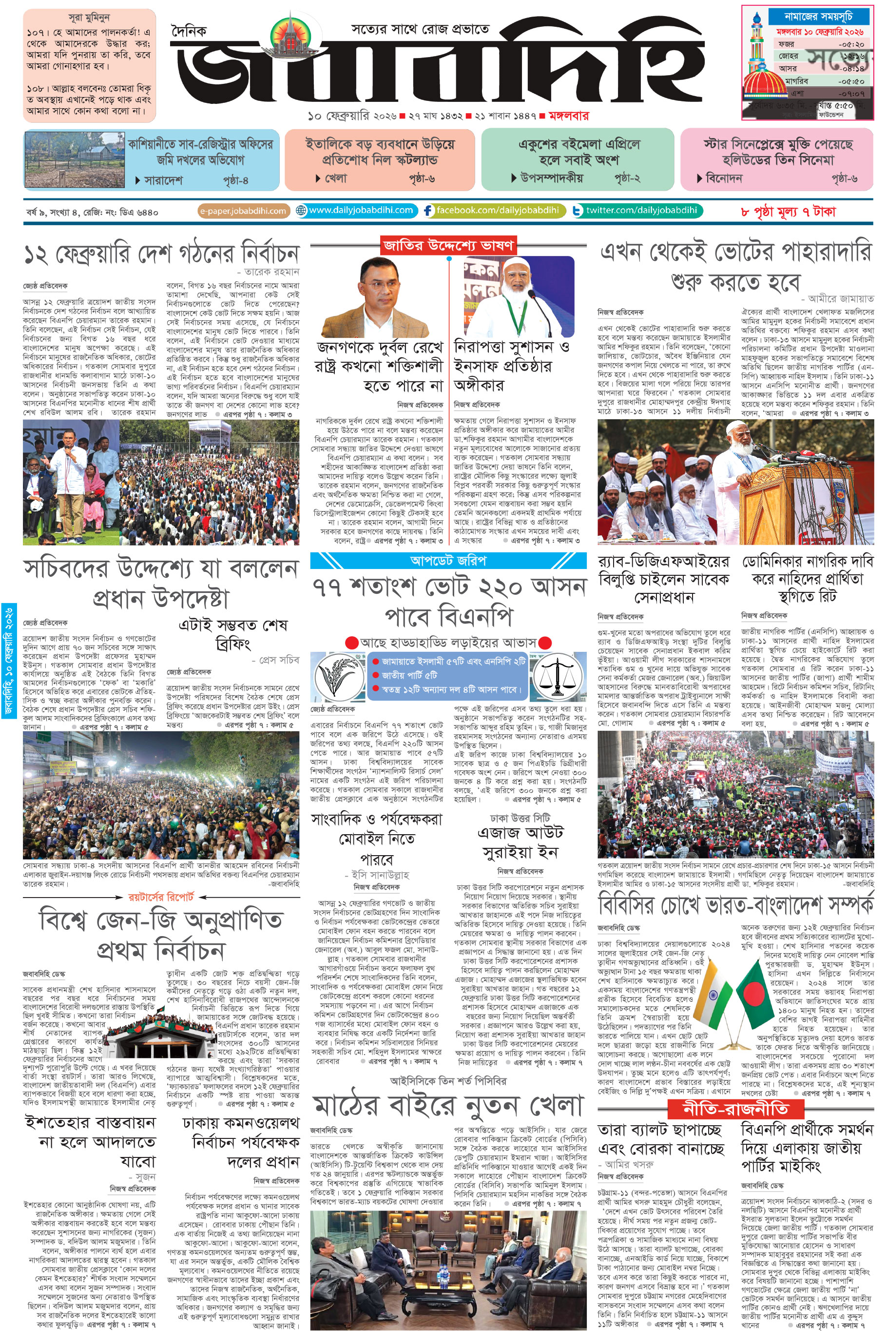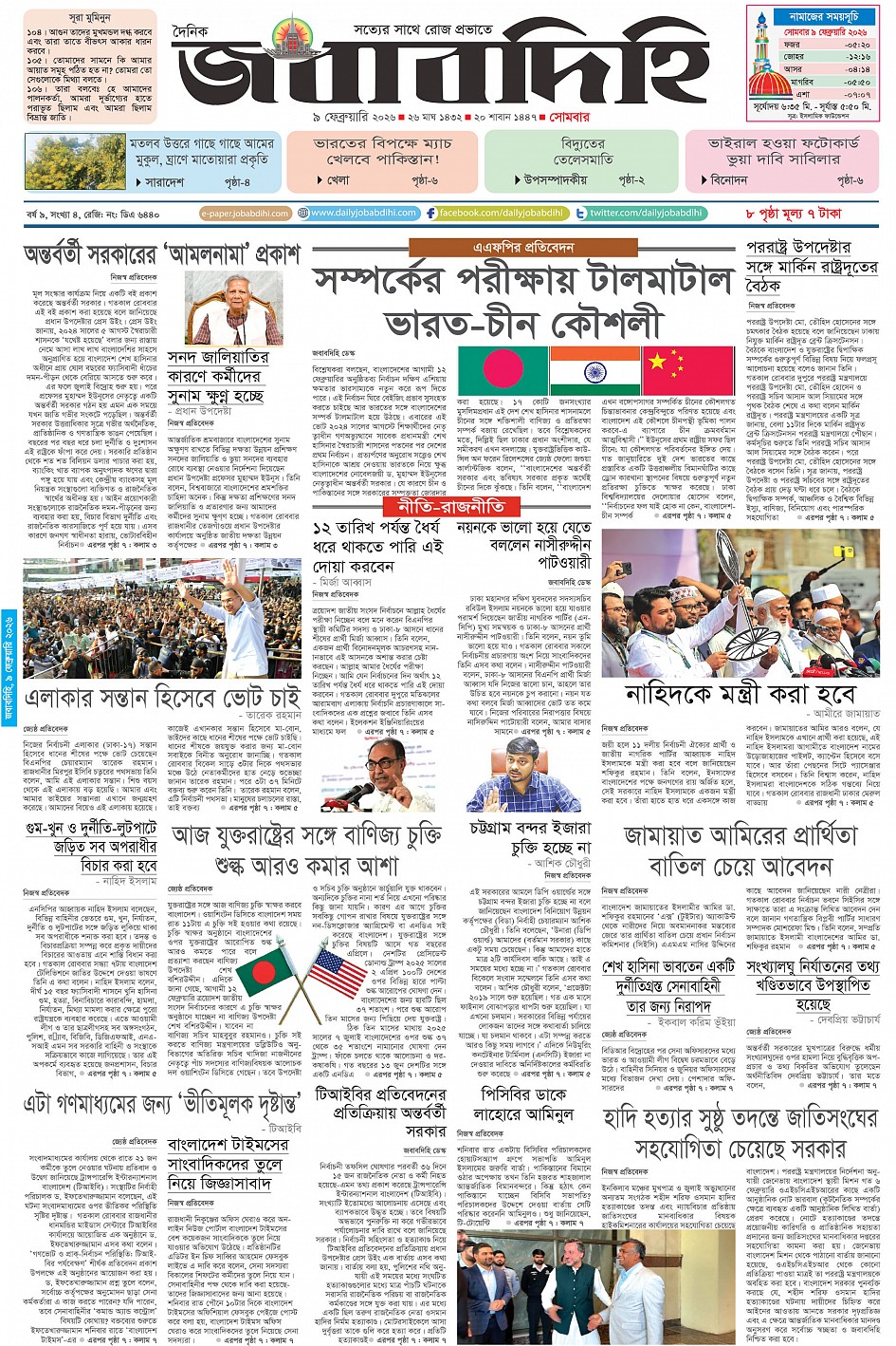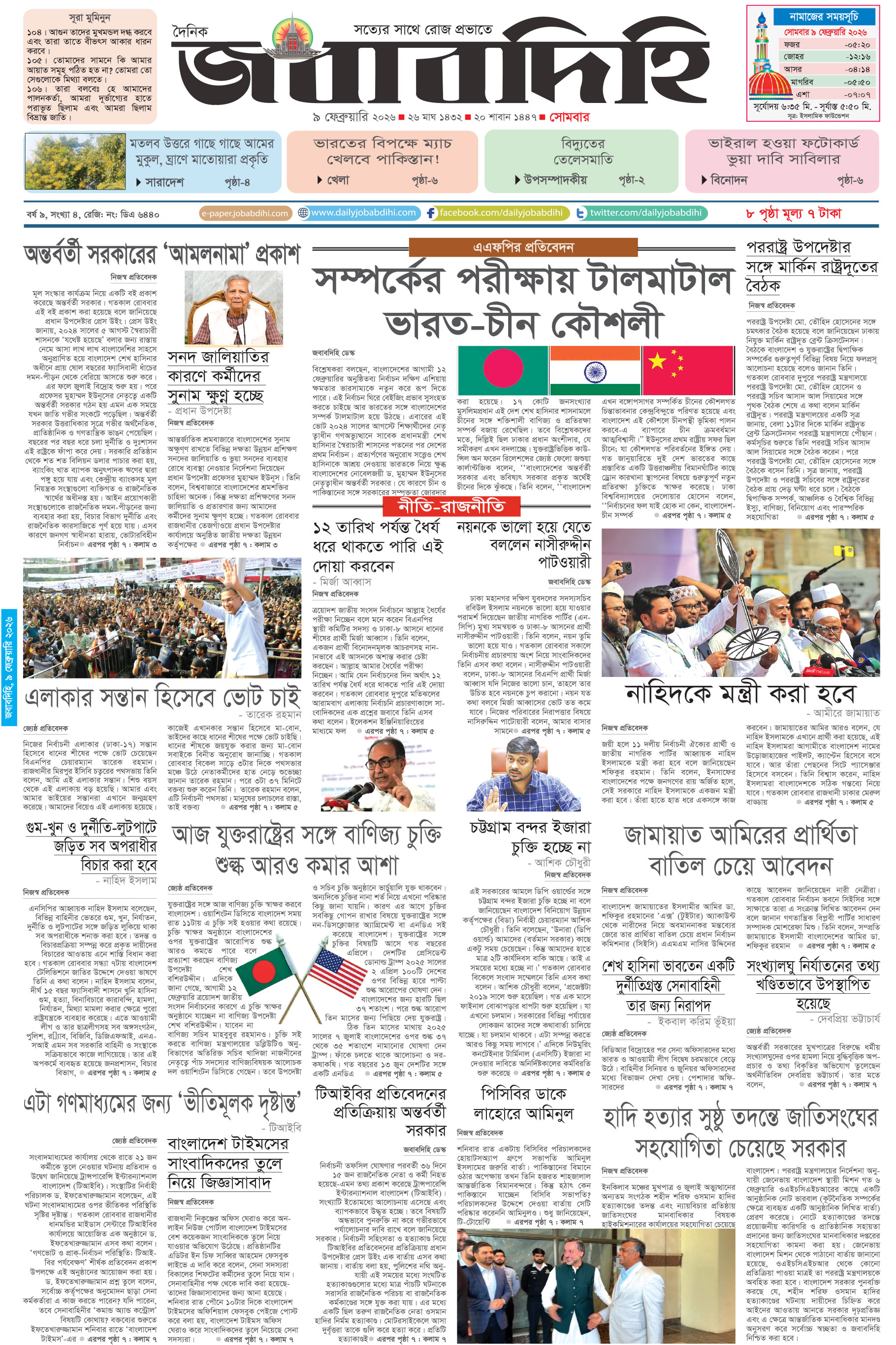 সোমবার, ০৯ ফেব্রুয়ারী ২০২৬, ২৭ মাঘ ১৪৩২