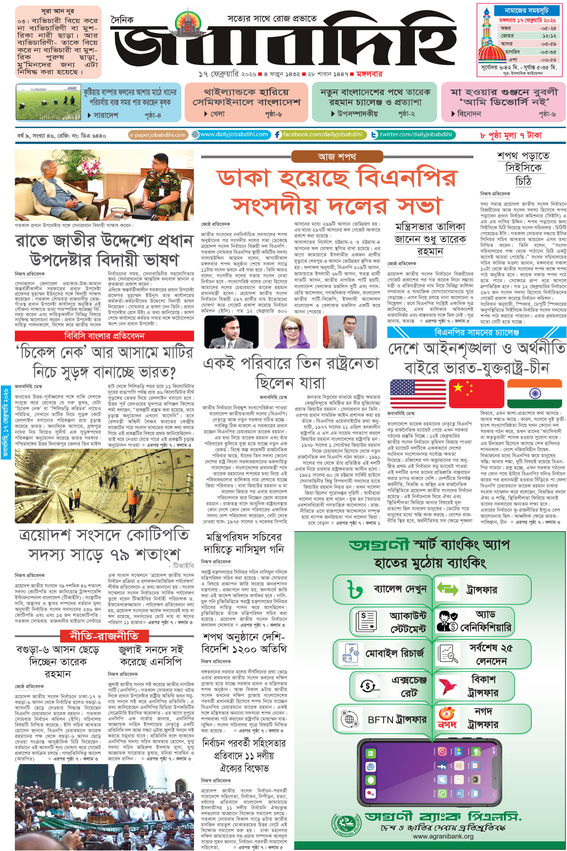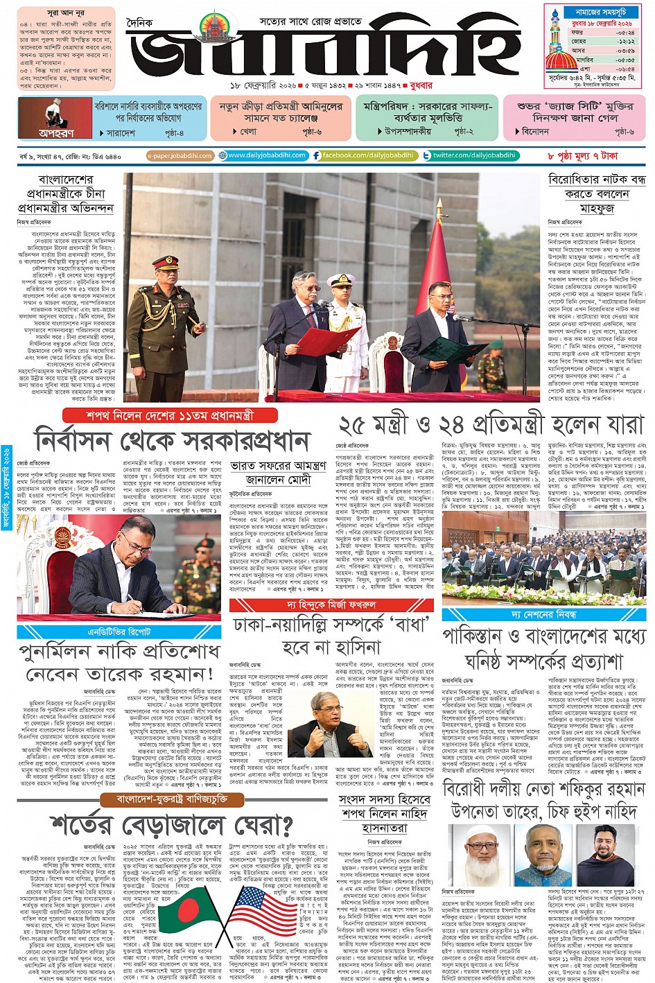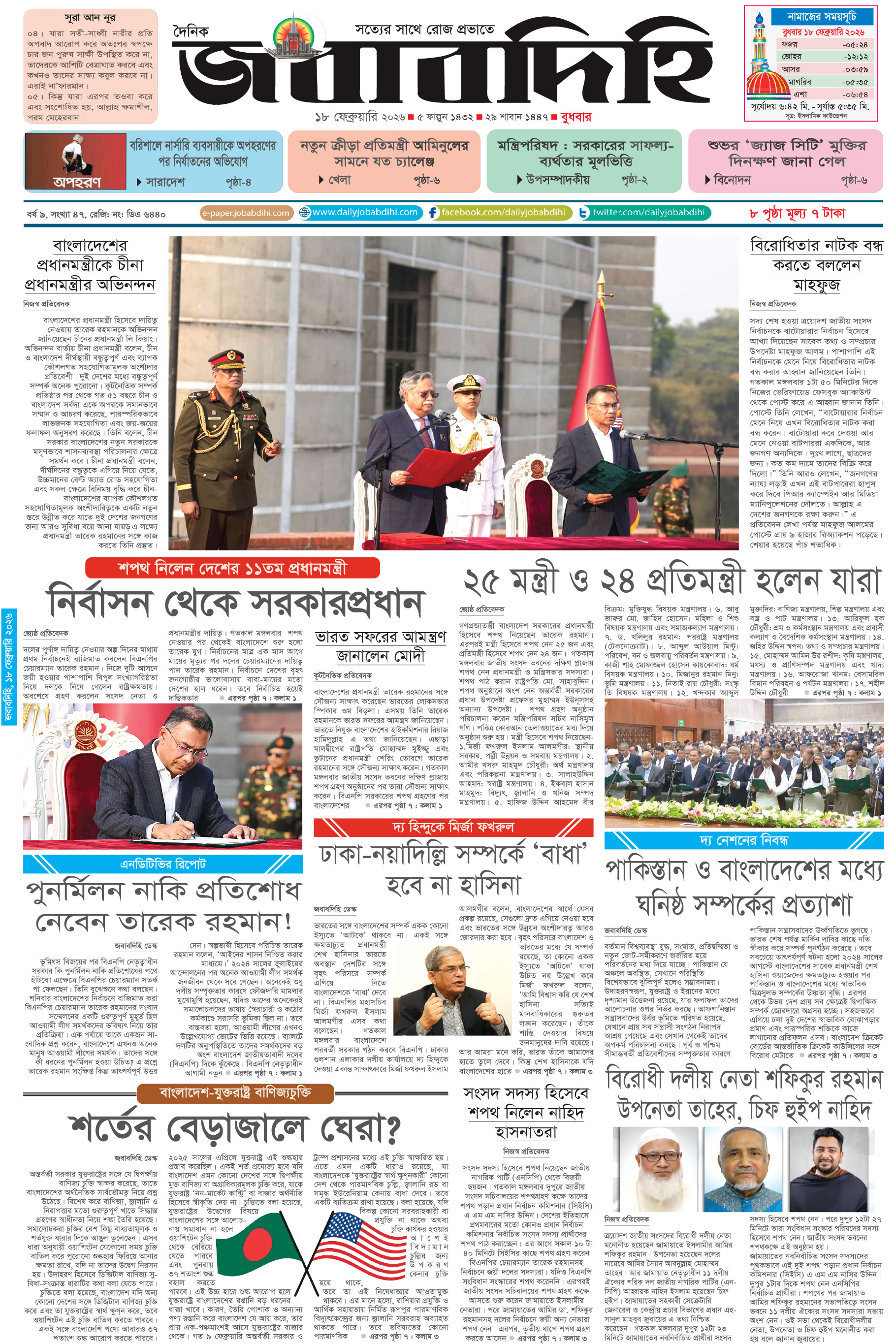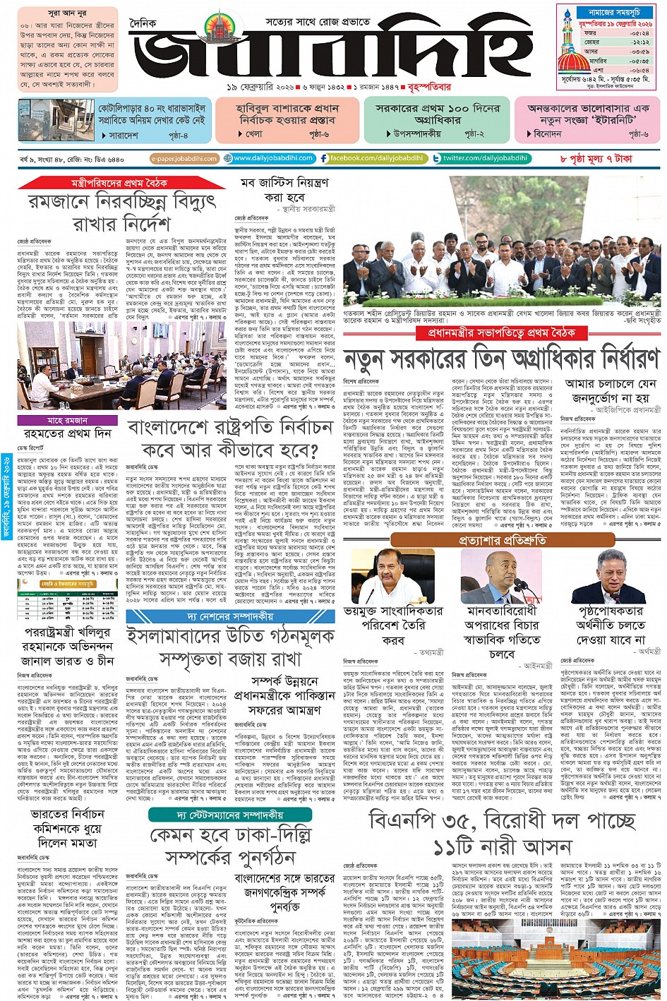 বৃহস্পতিবার, ১৯ ফেব্রুয়ারী ২০২৬, ৭ ফাল্গুন ১৪৩২