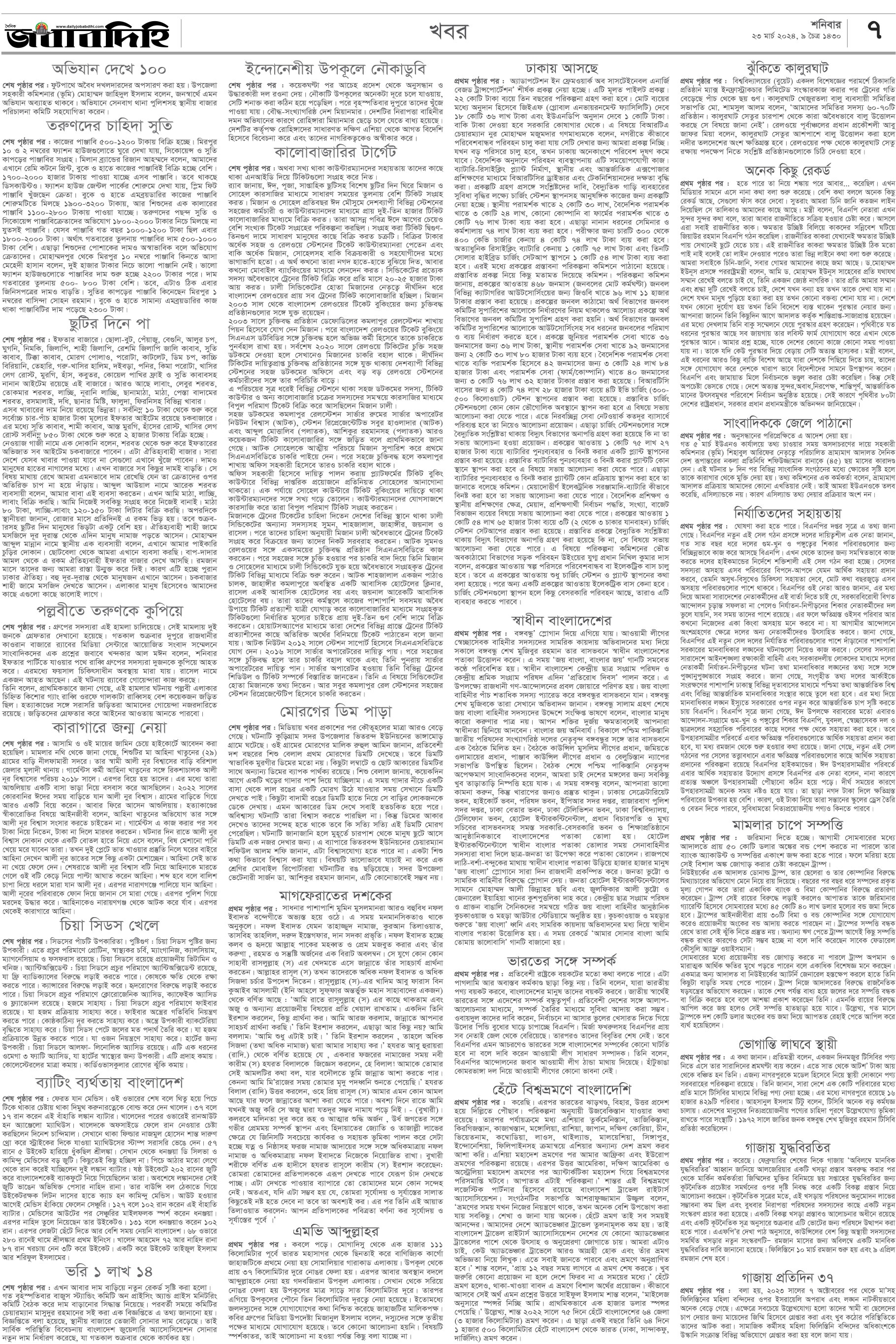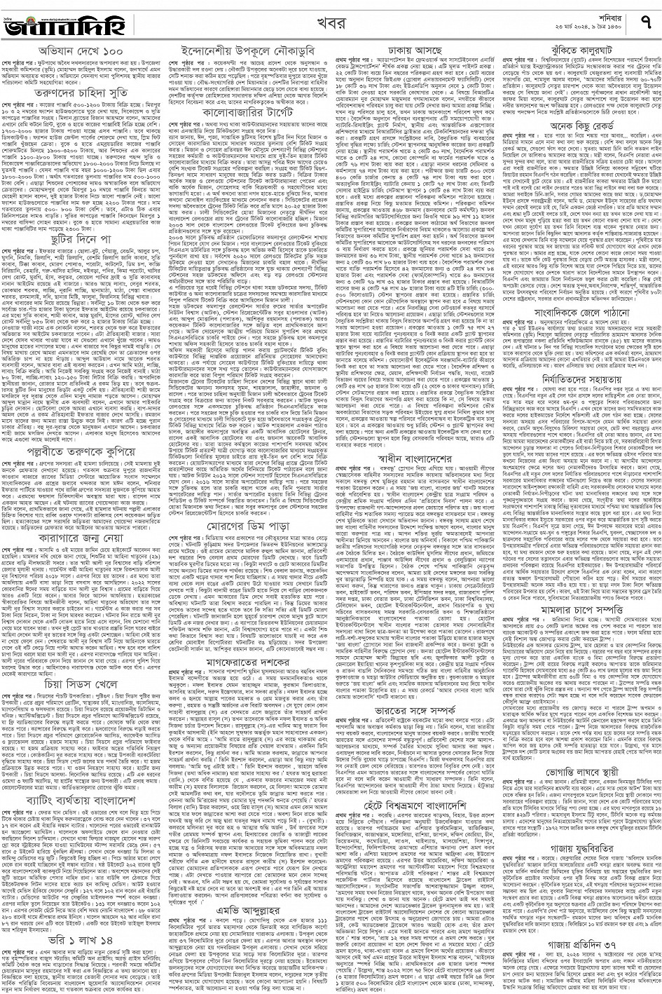 শনিবার, ২৩ মার্চ ২০২৪, ৯ চৈত্র ১৪৩০