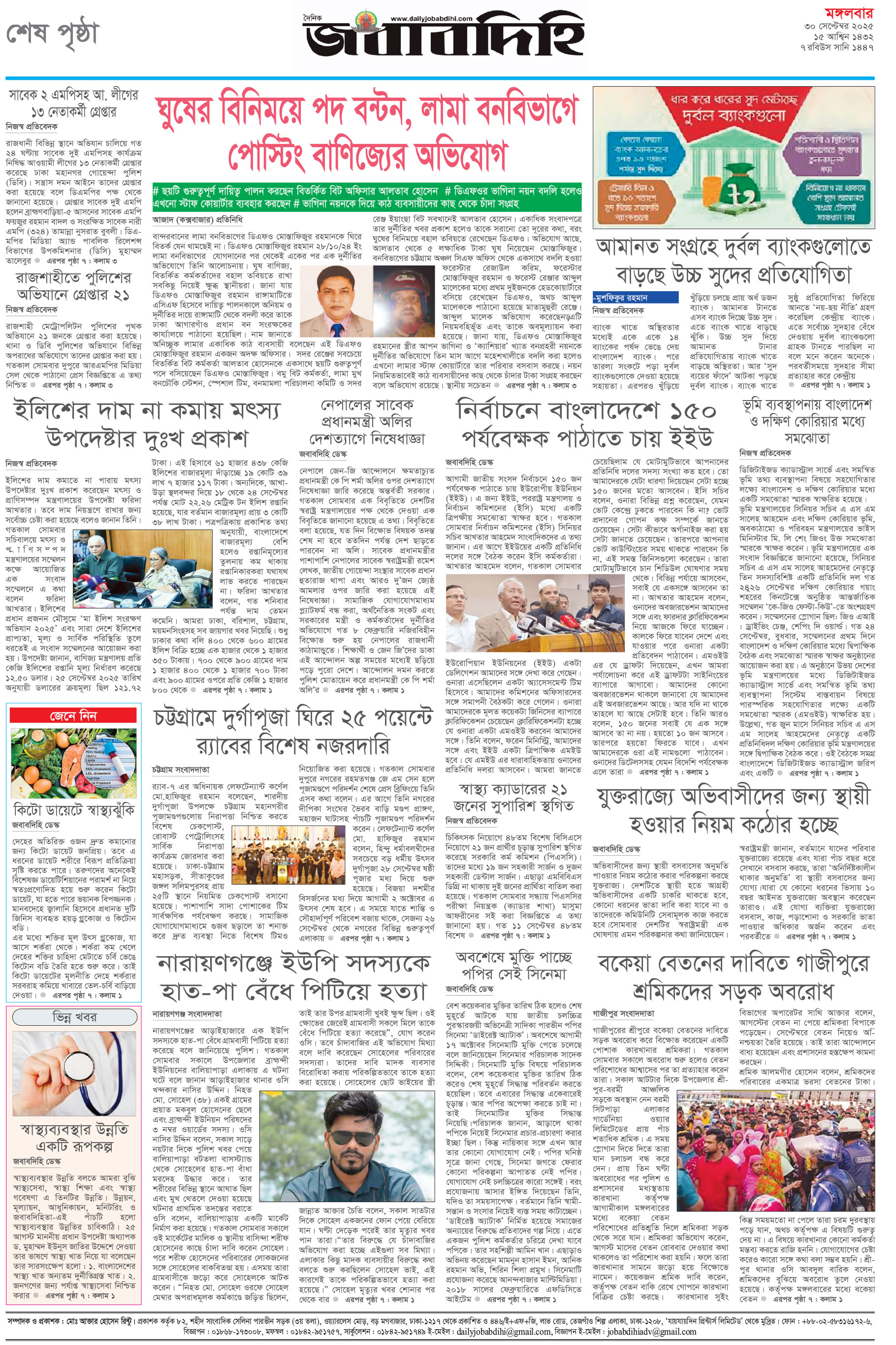 মঙ্গলবার, ৩০ সেপ্টেম্বার ২০২৫, ১৫ আশ্বিন ১৪৩২