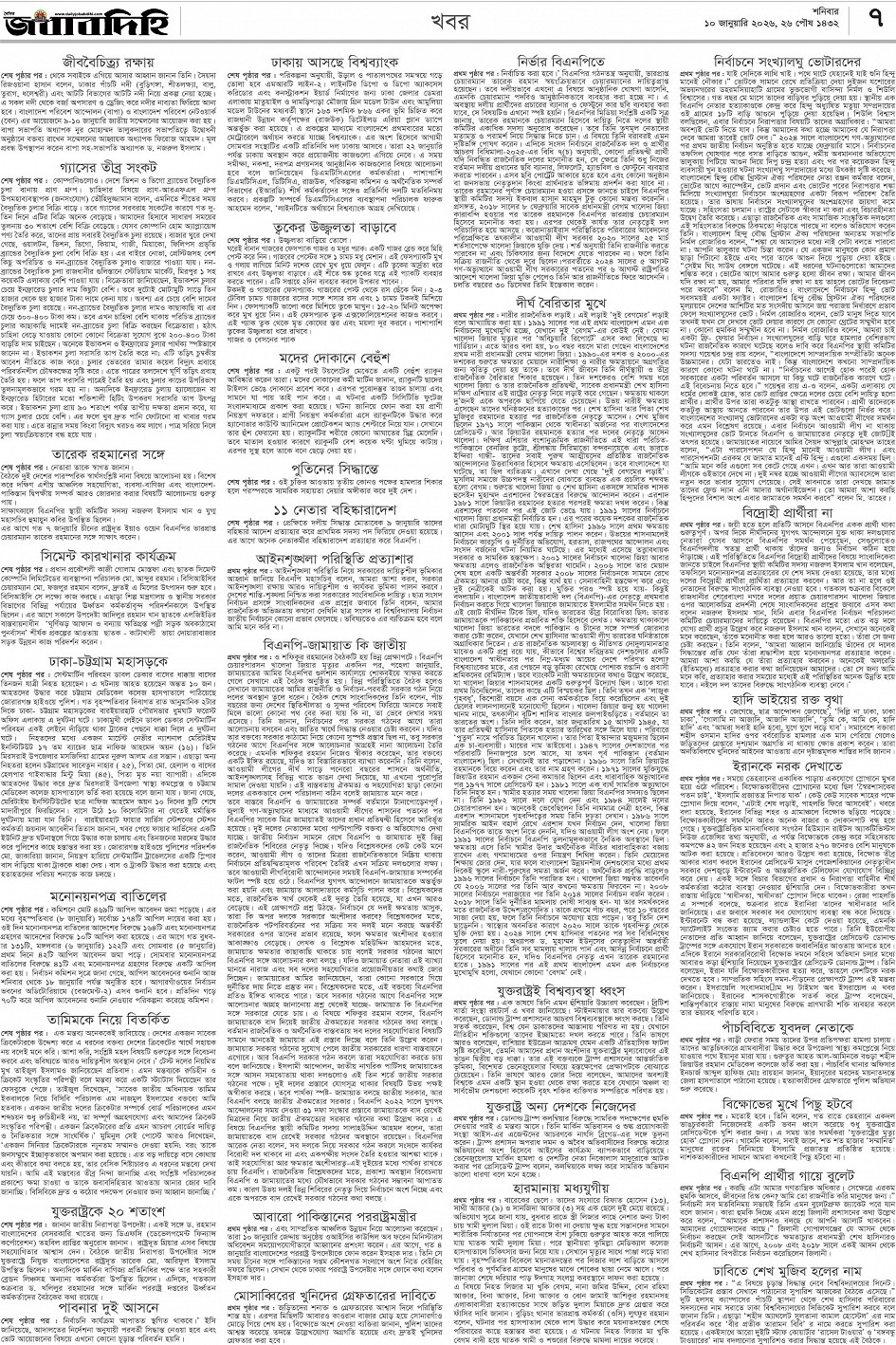 শনিবার, ১০ জানুয়ারী ২০২৬, ২৭ পৌষ ১৪৩২