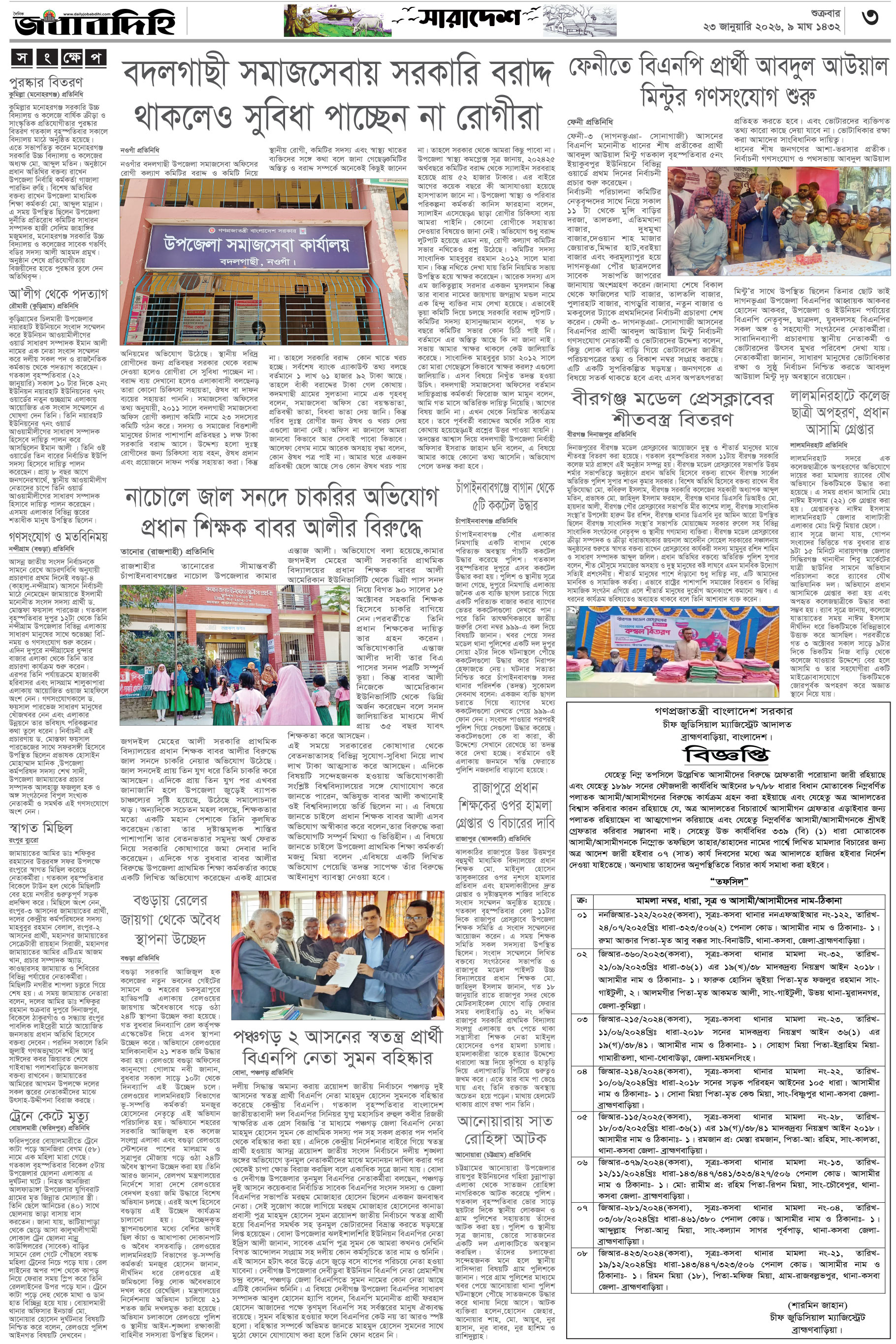 শুক্রবার, ২৩ জানুয়ারী ২০২৬, ১০ মাঘ ১৪৩২