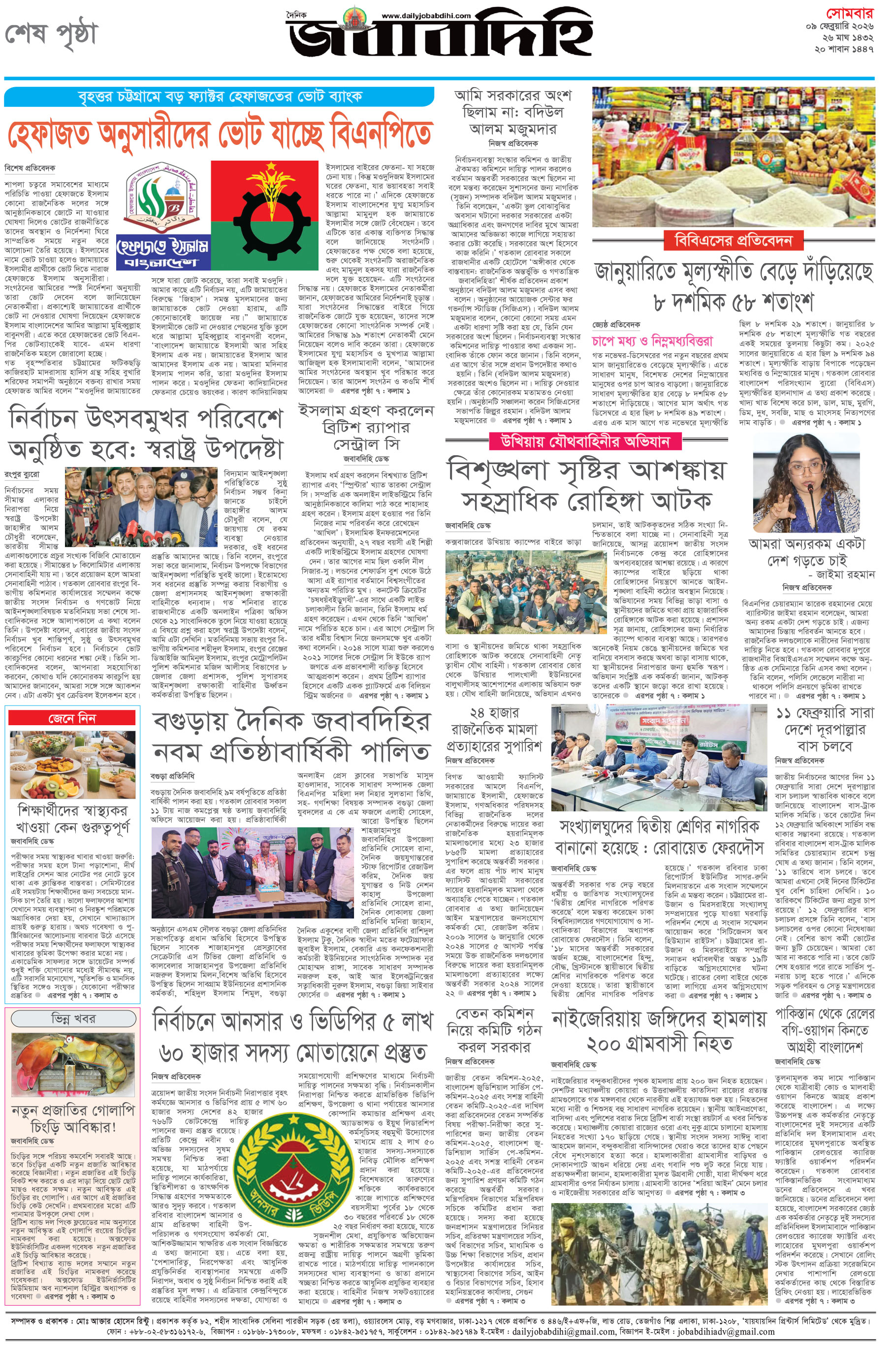 সোমবার, ০৯ ফেব্রুয়ারী ২০২৬, ২৭ মাঘ ১৪৩২