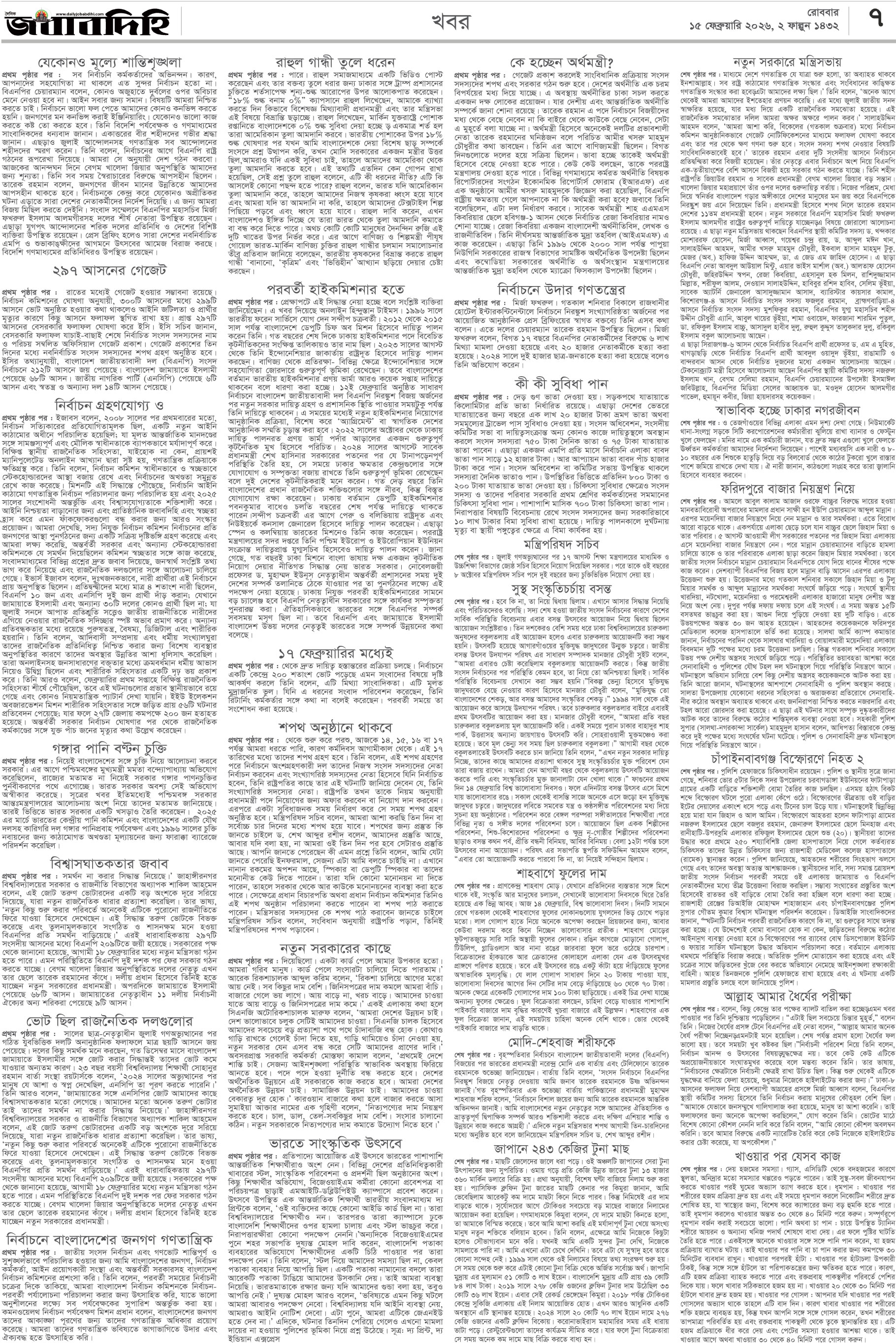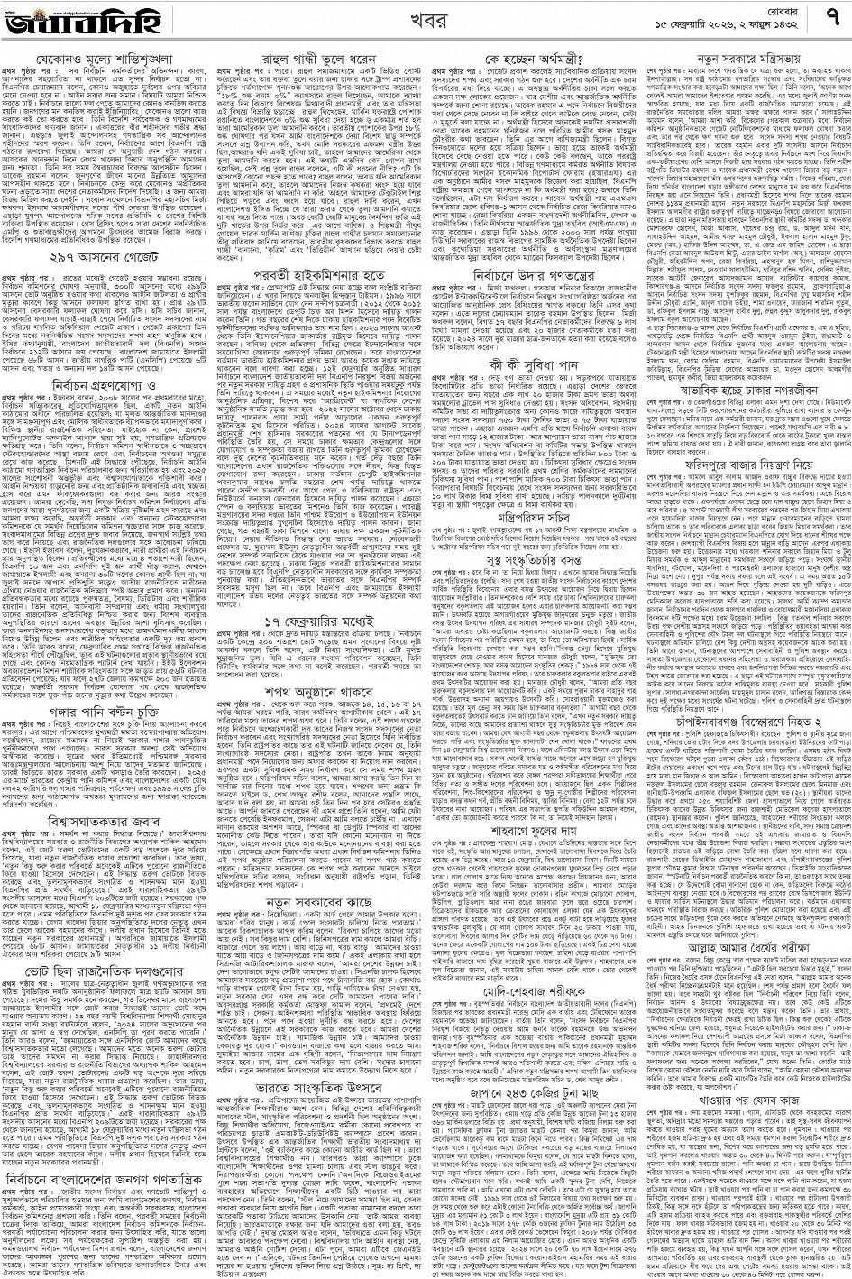 রবিবার, ১৫ ফেব্রুয়ারী ২০২৬, ৩ ফাল্গুন ১৪৩২