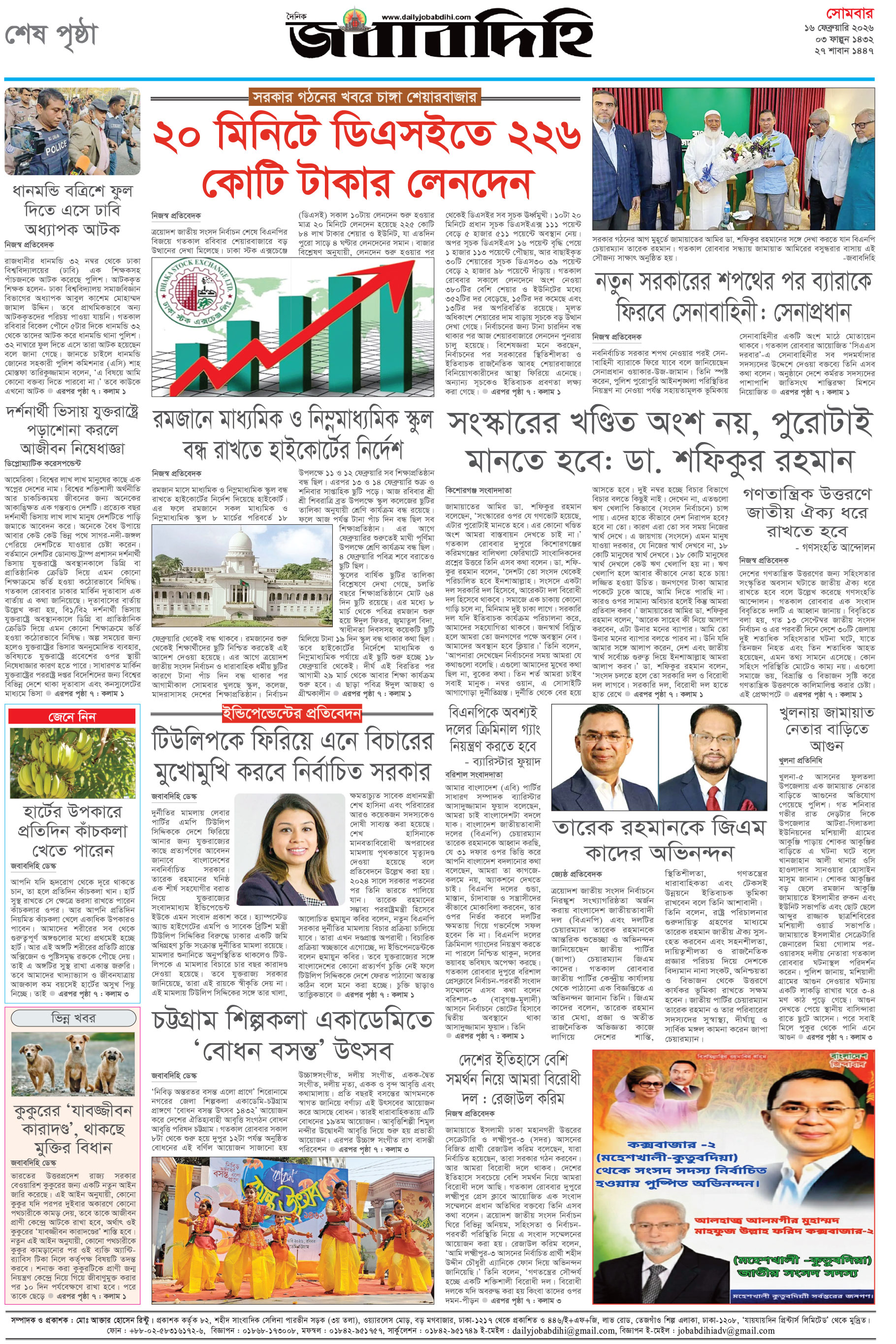 মঙ্গলবার, ১৭ ফেব্রুয়ারী ২০২৬, ৫ ফাল্গুন ১৪৩২