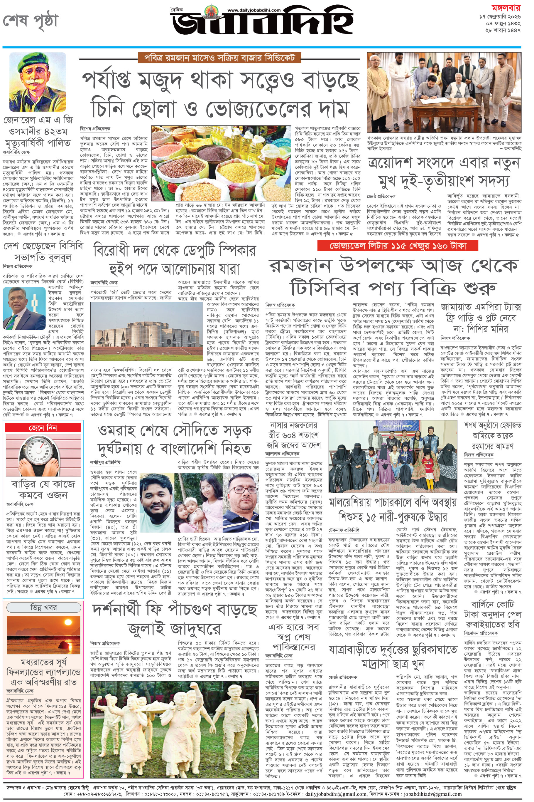 মঙ্গলবার, ১৭ ফেব্রুয়ারী ২০২৬, ৫ ফাল্গুন ১৪৩২