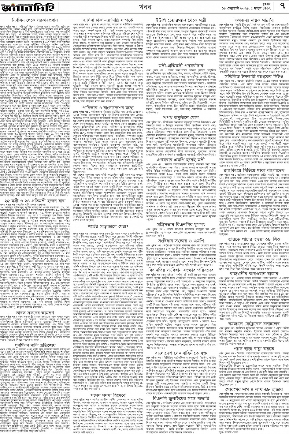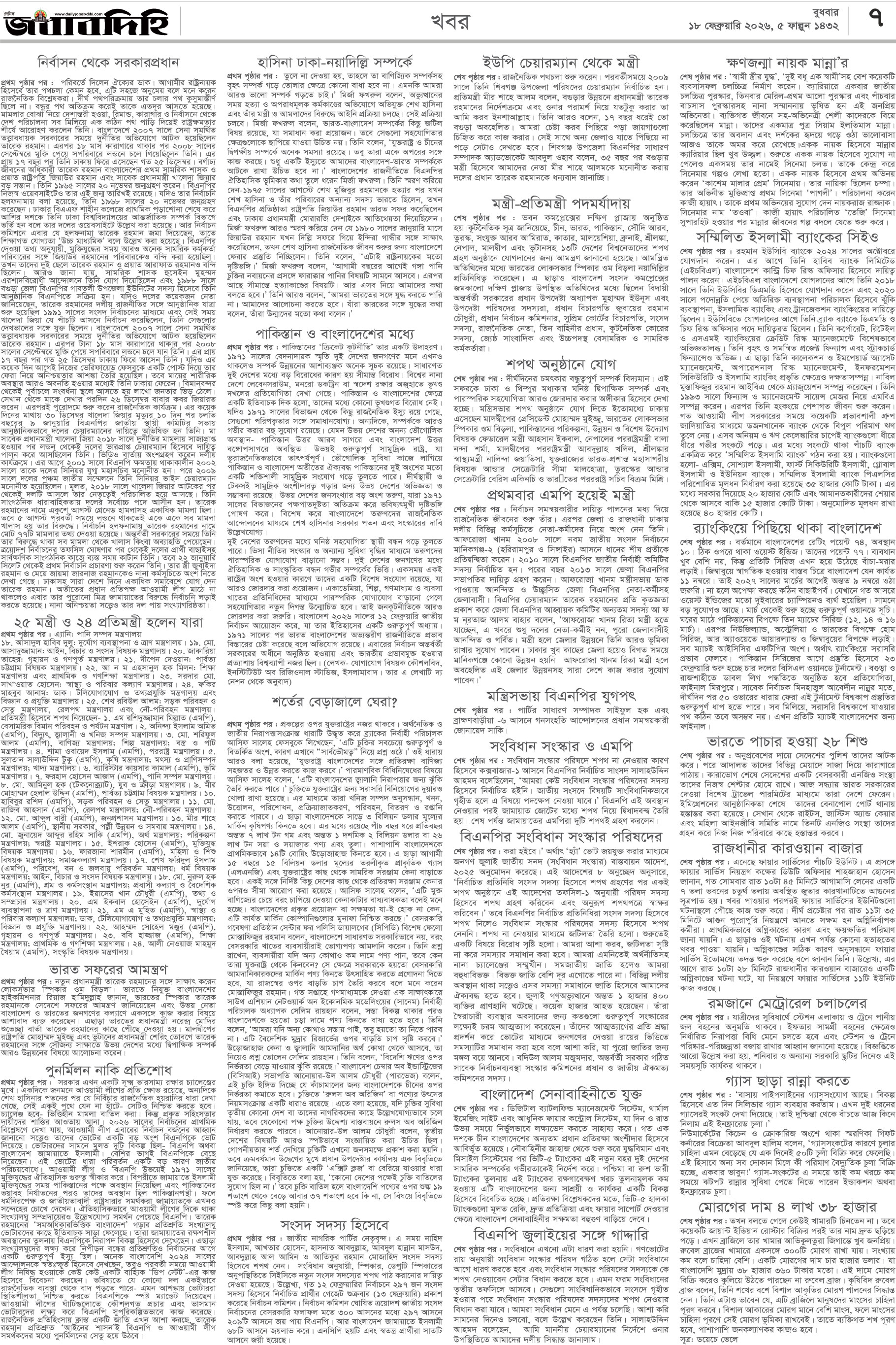 বুধবার, ১৮ ফেব্রুয়ারী ২০২৬, ৬ ফাল্গুন ১৪৩২
