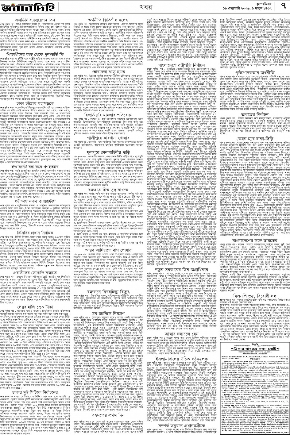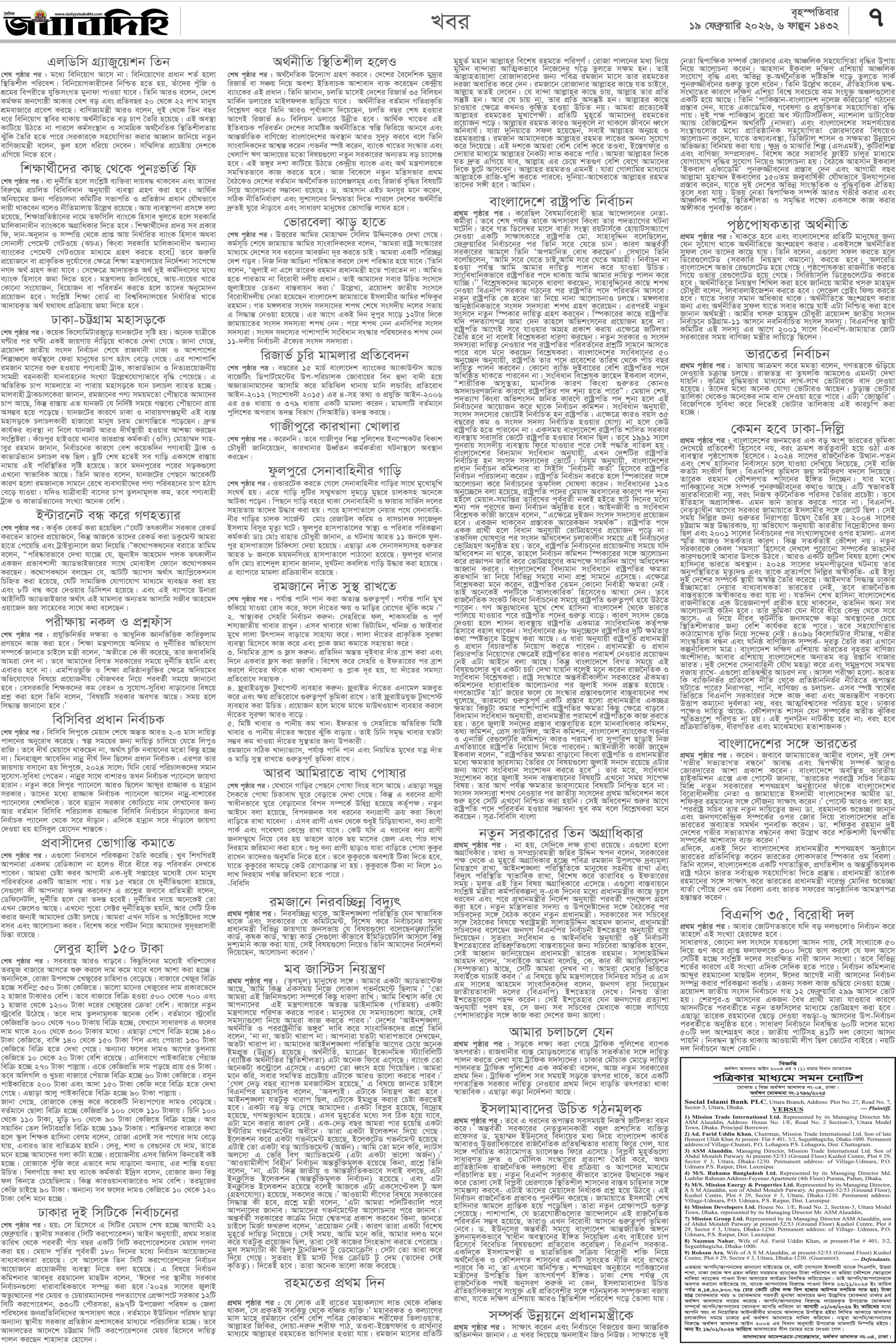 বৃহস্পতিবার, ১৯ ফেব্রুয়ারী ২০২৬, ৭ ফাল্গুন ১৪৩২