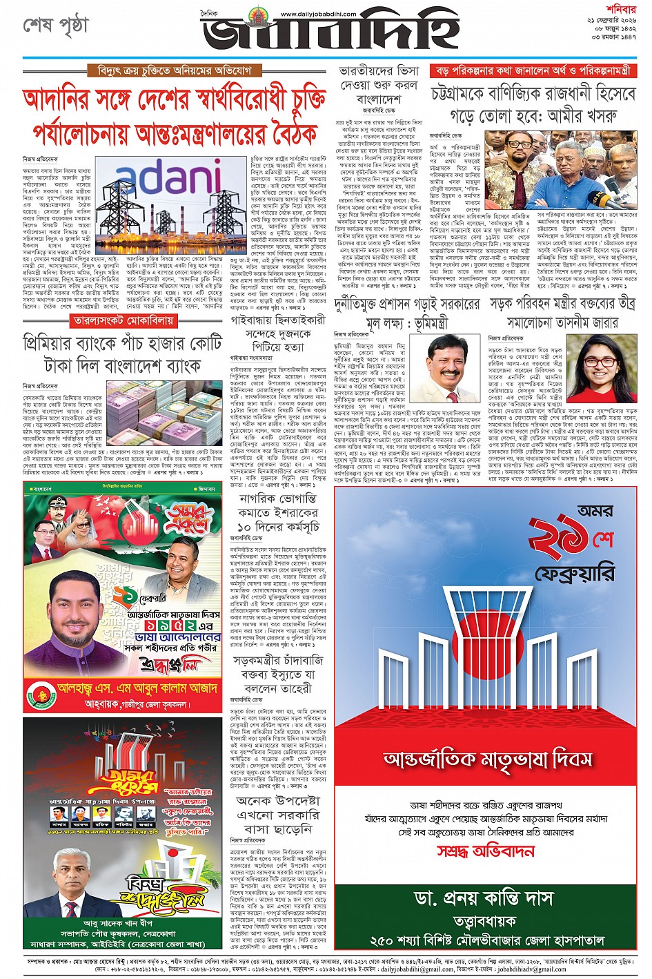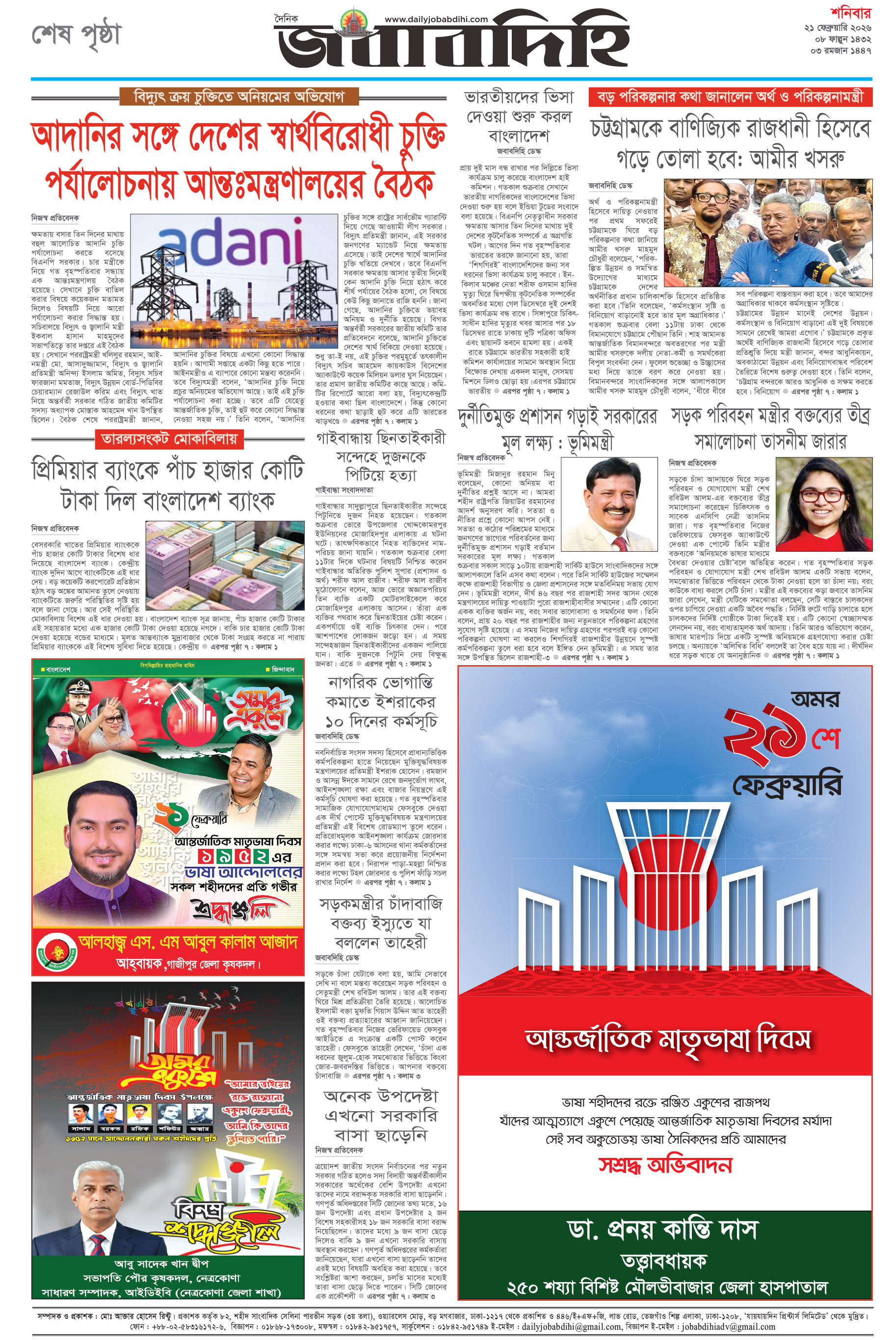 শনিবার, ২১ ফেব্রুয়ারী ২০২৬, ৯ ফাল্গুন ১৪৩২
