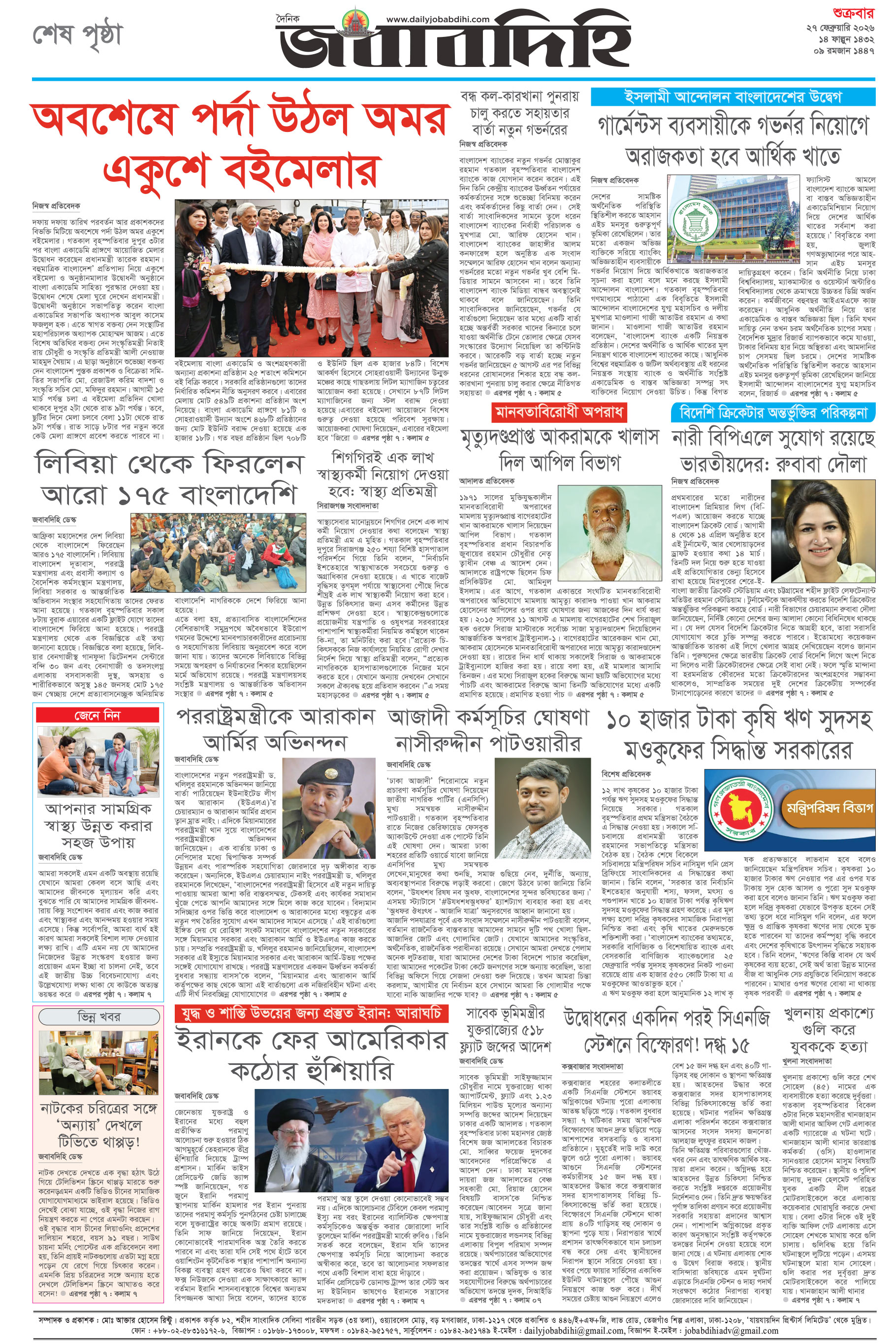 শুক্রবার, ২৭ ফেব্রুয়ারী ২০২৬, ১৫ ফাল্গুন ১৪৩২