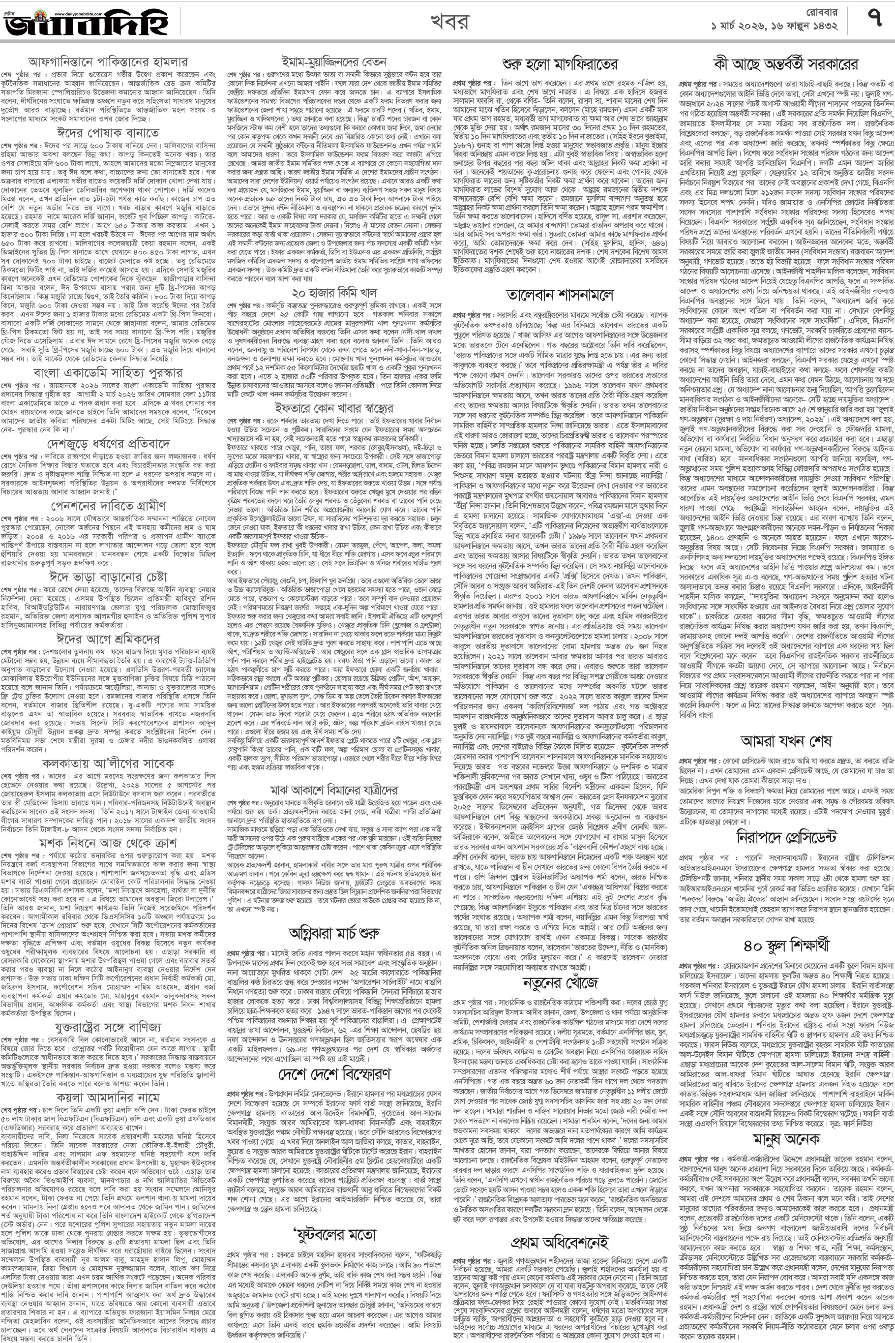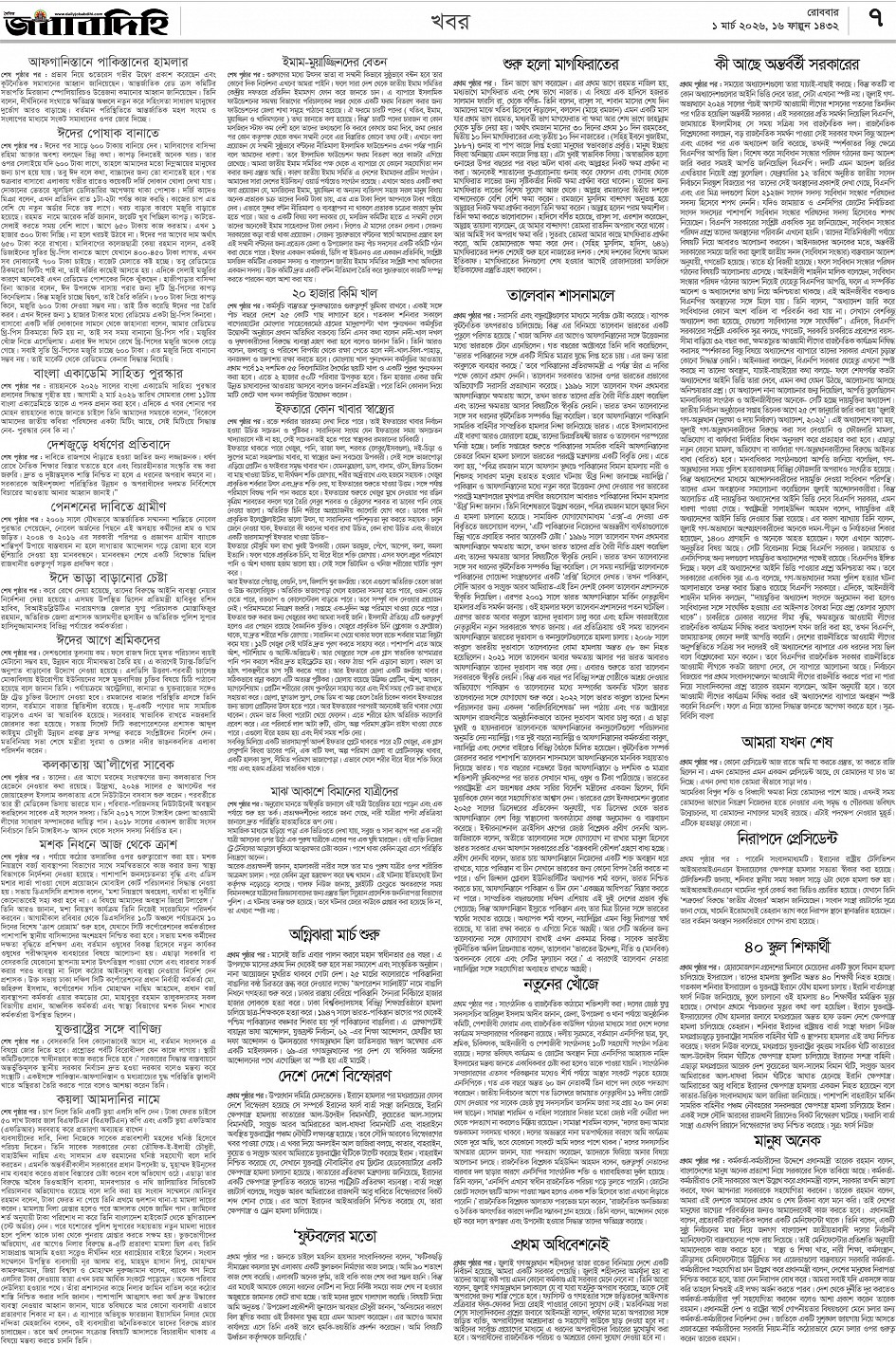 রবিবার, ০১ মার্চ ২০২৬, ১৭ ফাল্গুন ১৪৩২