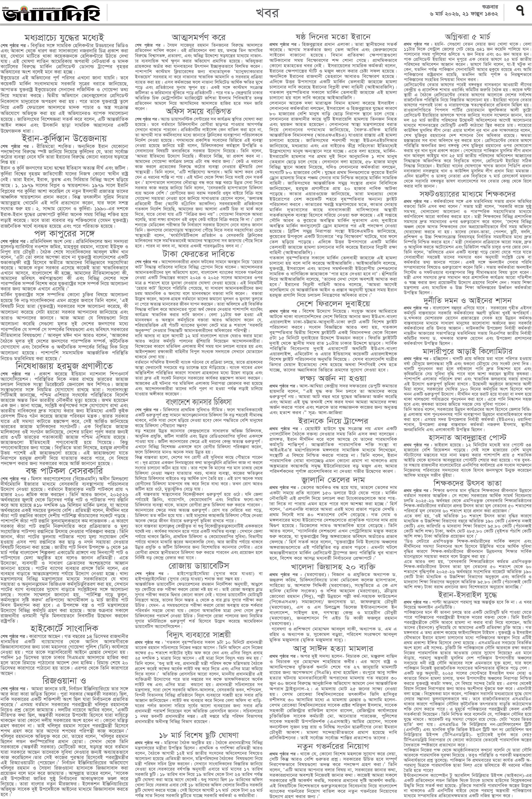 শুক্রবার, ০৬ মার্চ ২০২৬, ২২ ফাল্গুন ১৪৩২