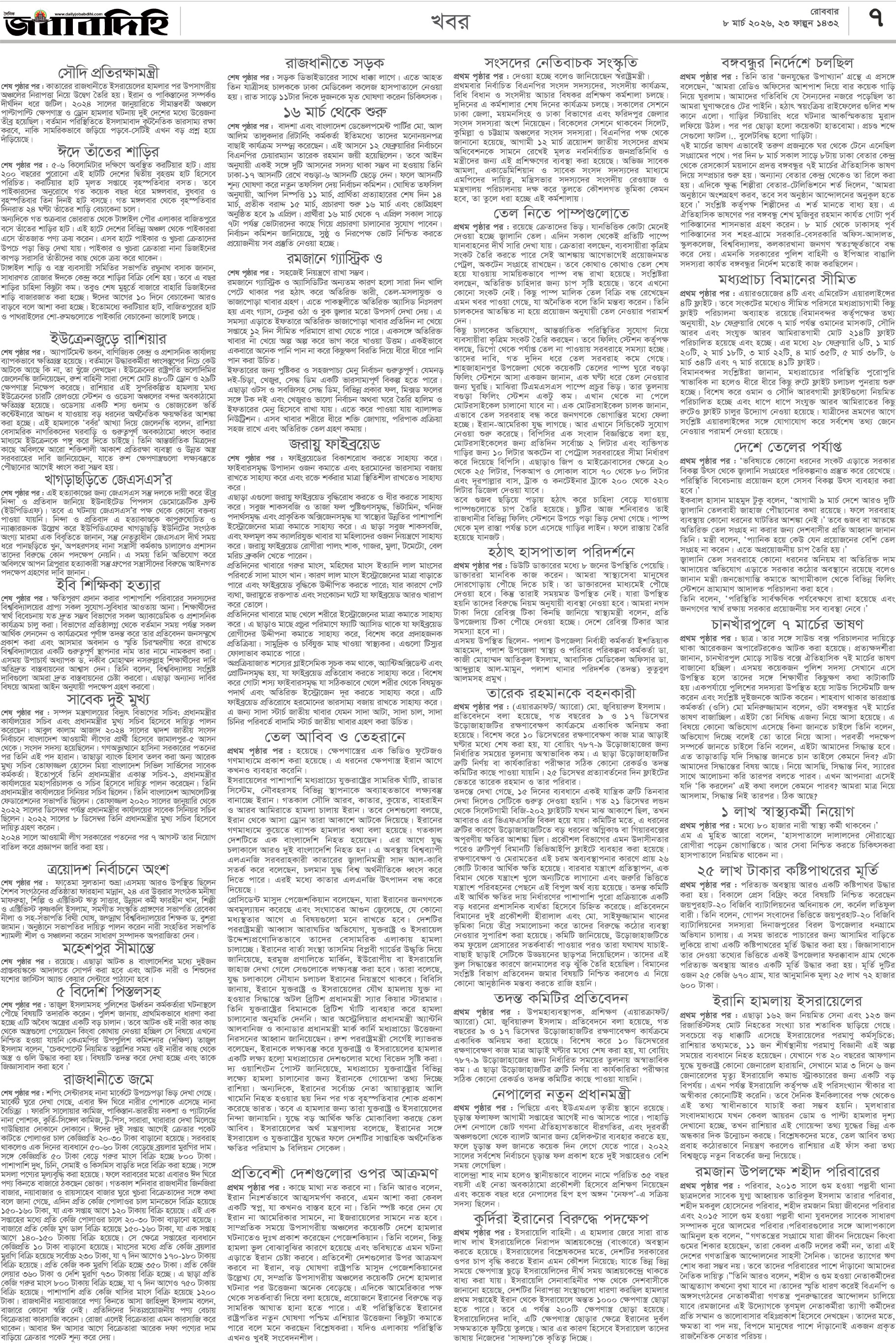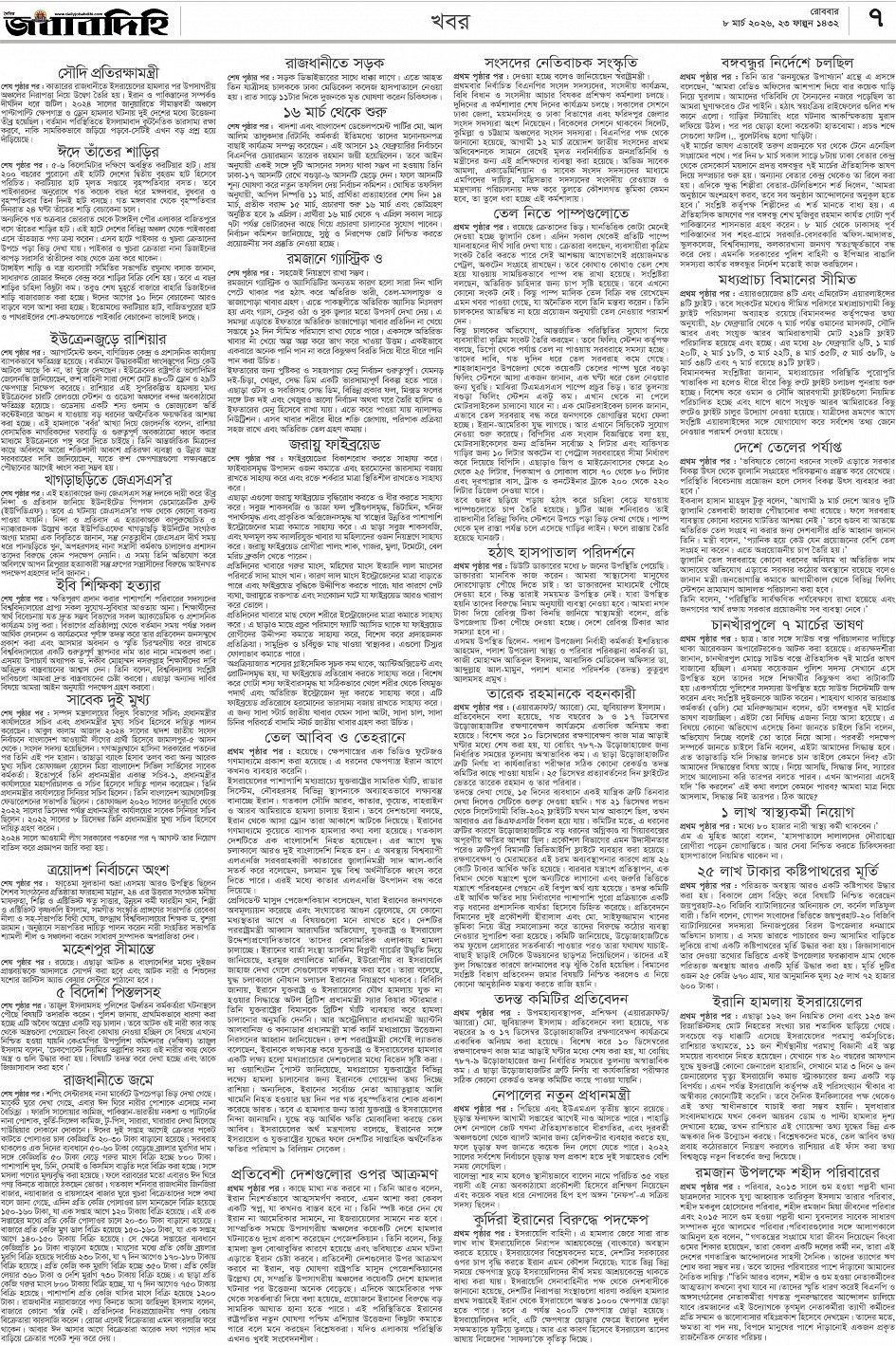 রবিবার, ০৮ মার্চ ২০২৬, ২৪ ফাল্গুন ১৪৩২