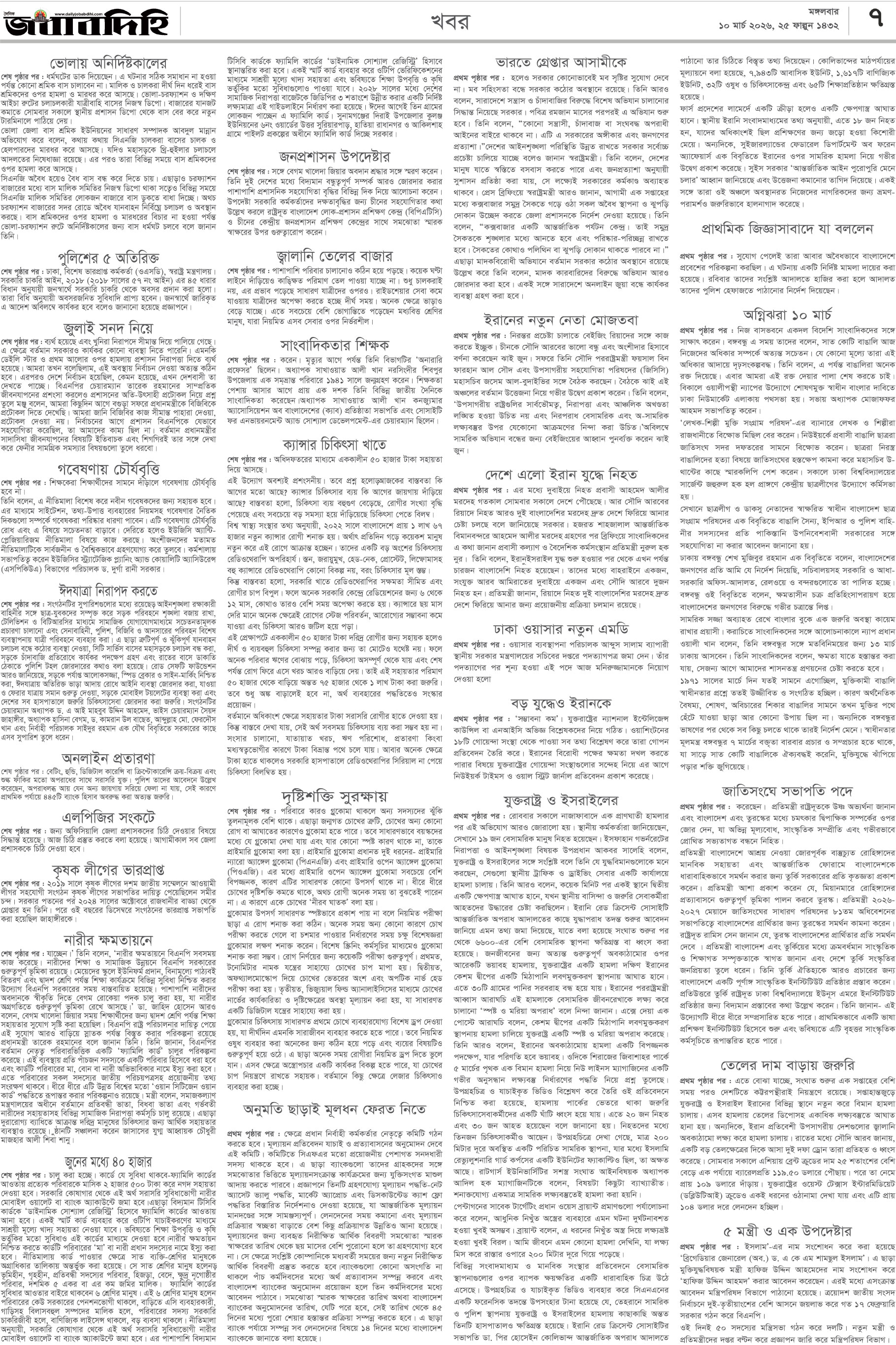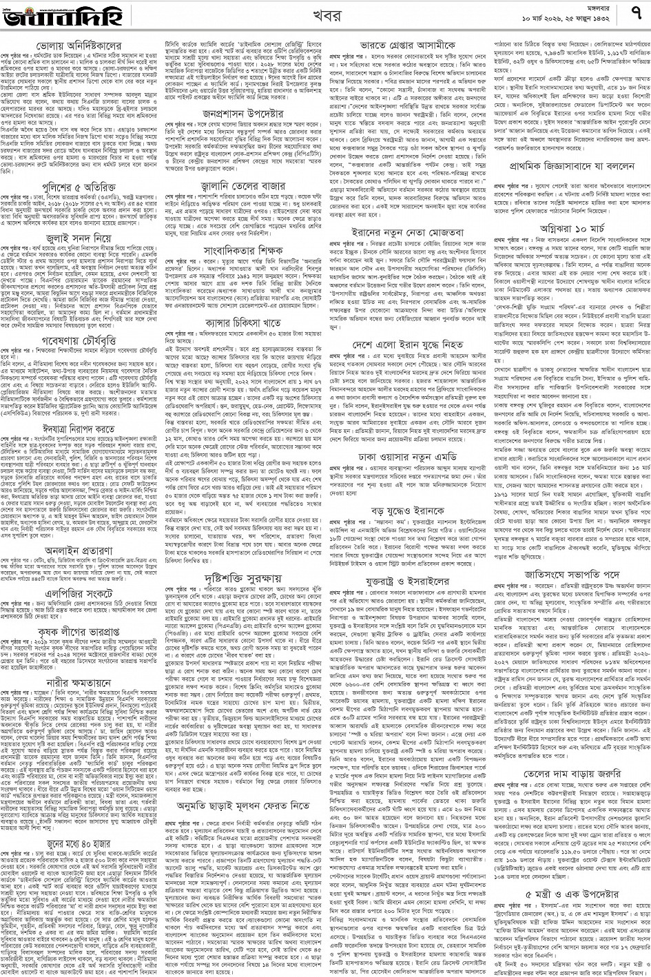 মঙ্গলবার, ১০ মার্চ ২০২৬, ২৬ ফাল্গুন ১৪৩২